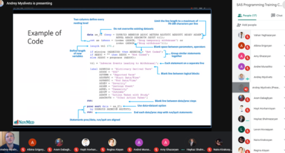 Along with the historical aspects, regulatory documentation overview and other basic theories on clinical trials, the course’s syllabus covered all basic SAS Programming and CDISC standards overview.